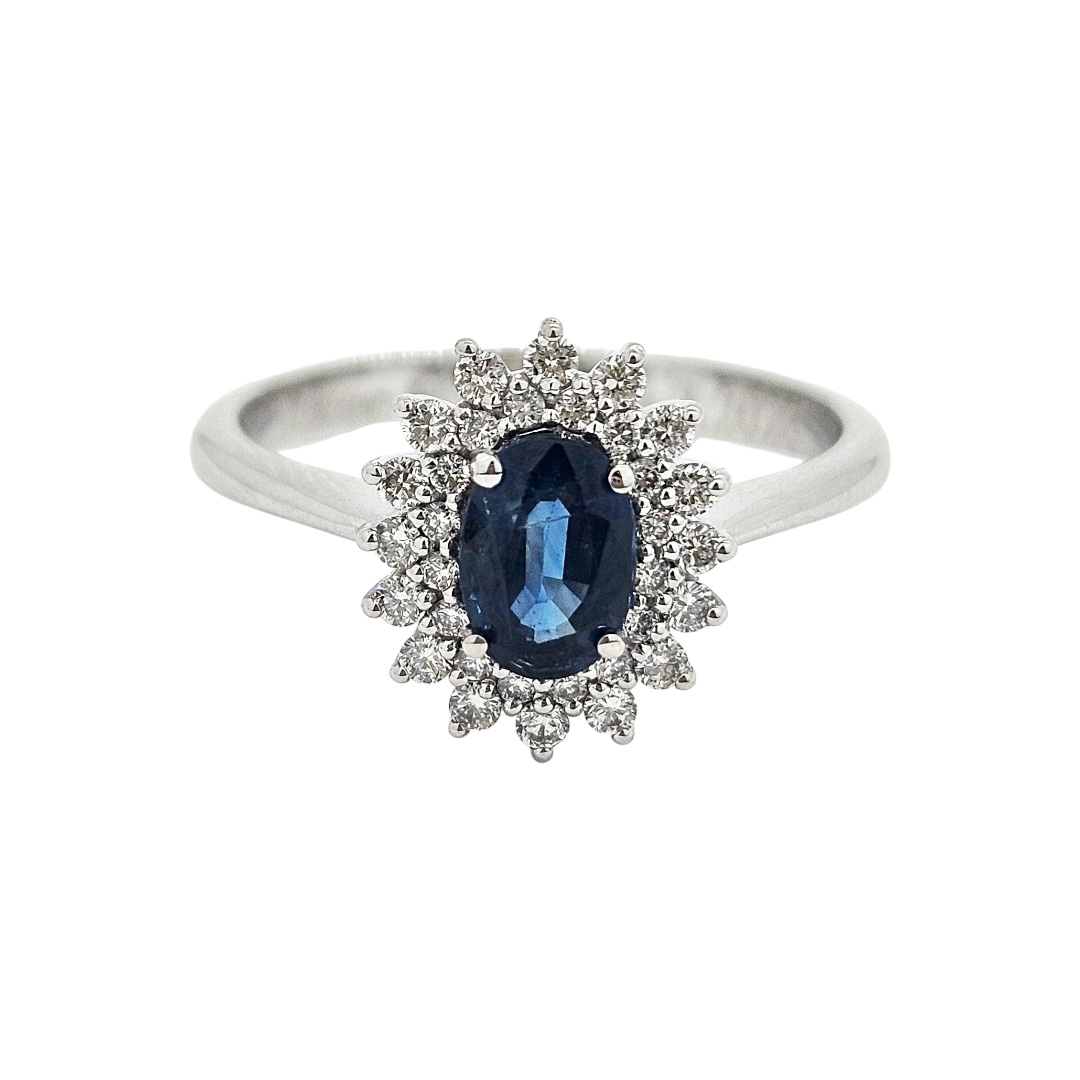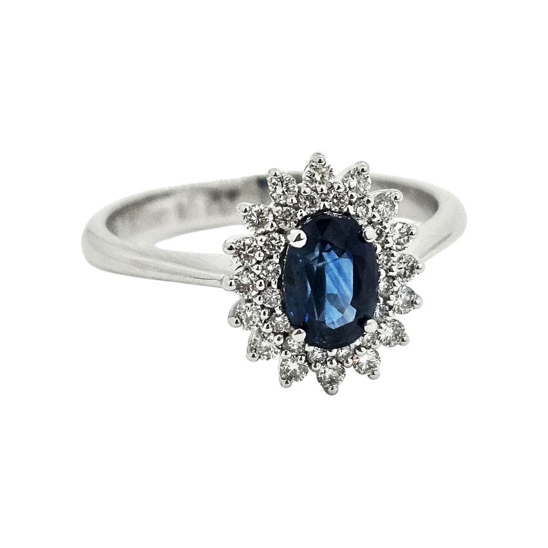 kameny: 32 briliantů 32/0,22 ct VS1/F 1x přírodní safír 6x4 mm